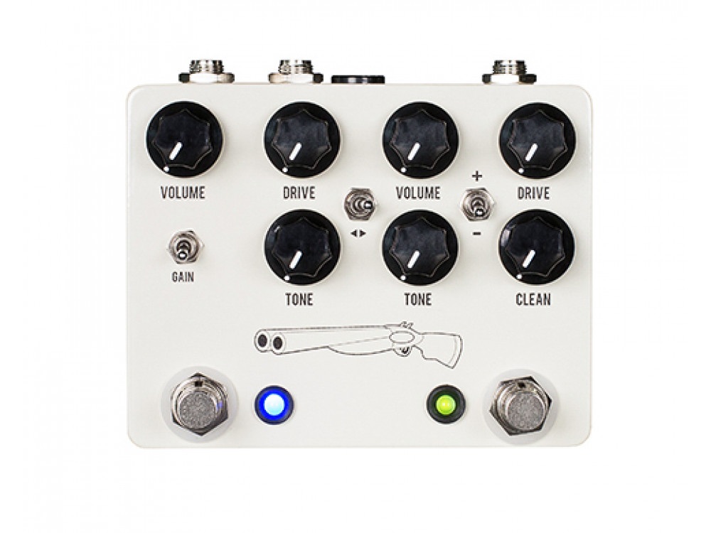 Este pedal cubre todo desde la baja hasta la media ganancia. El Double Barrel es para guitarristas que quieren un overdrive versátil pero transparente en niveles medios o bajos. Tiene 2 canales. El de la derecha lleva un circuito JHS-808 con más ajustes, graves más enfocados y mejor presencia y calidez que otros pedales del mercado. Con un nuevo control Clean. El selector de 3 posiciones te permite elegir entre Saturated, Boost y Crunch.