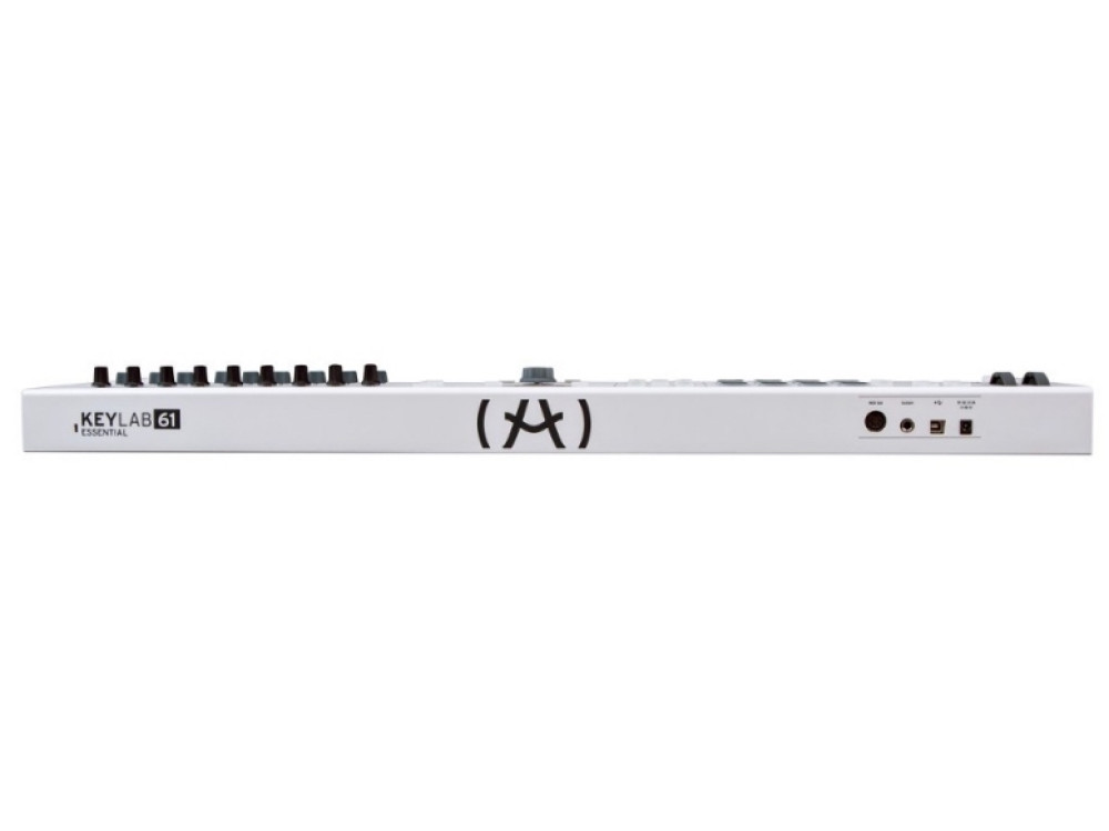 Arturia KeyLab Essential 61 es un teclado controlador de 61 teclas sensibles a la velocidad. Tiene todos los controles que necesitas para manejar tu estudio y concentrarte en tus producciones: ruedas de pitch y de modulación, controles de octava, 2 botones para "Chord play", control dedicado para canal MIDI, 8 pads mapeables, botones de centro de comando DAW, pantalla LCD de 2 líneas, 9 rotatorios y 9 faders pre-mapeados, MIDI Out, entrada para pedal de sustain, USB, alimentación opcional DC.