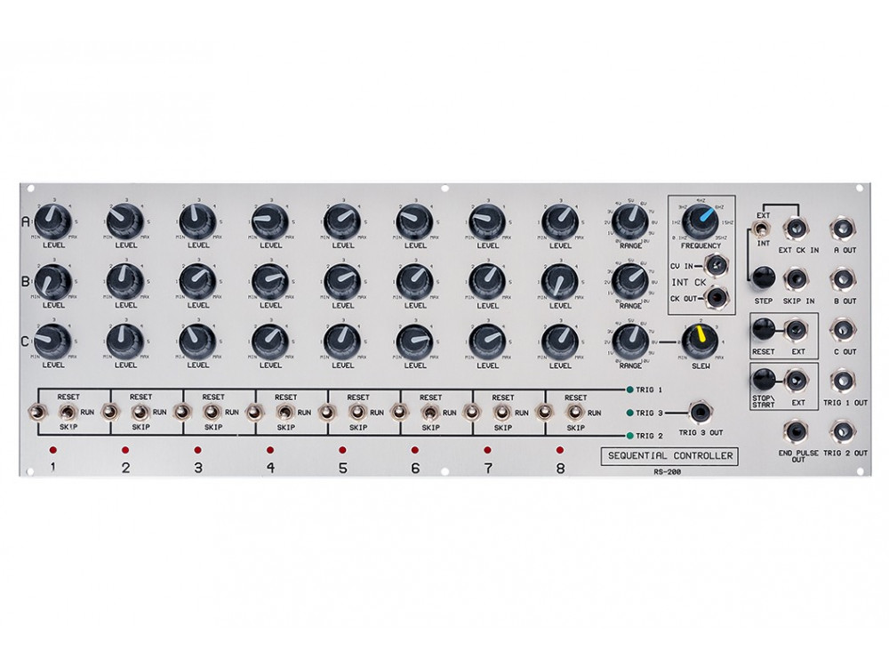Un verdadero secuenciador por pasos analógico con tres filas de ocho pasos para generar tensiones de control y señales de disparo. El RDS200 impresiona con un interno, generador de tensión reloj controlable, portamento, restablecer iniciar funciones / parada y una función de salto de tensión