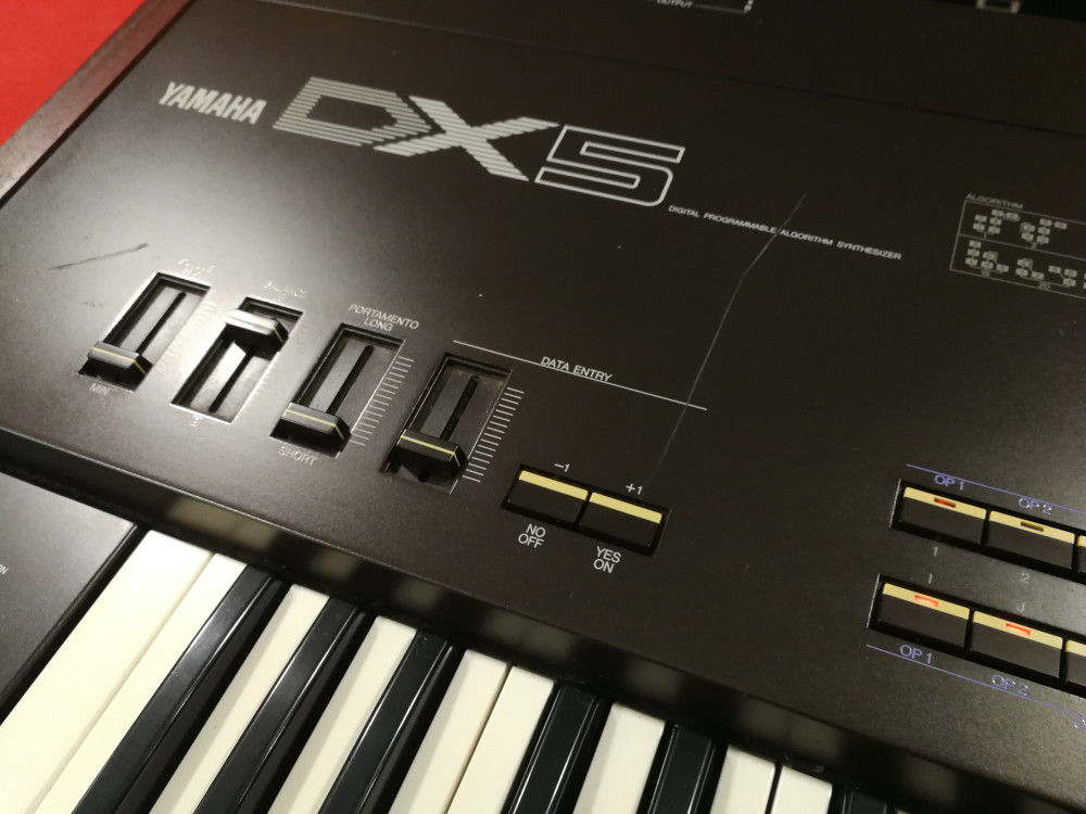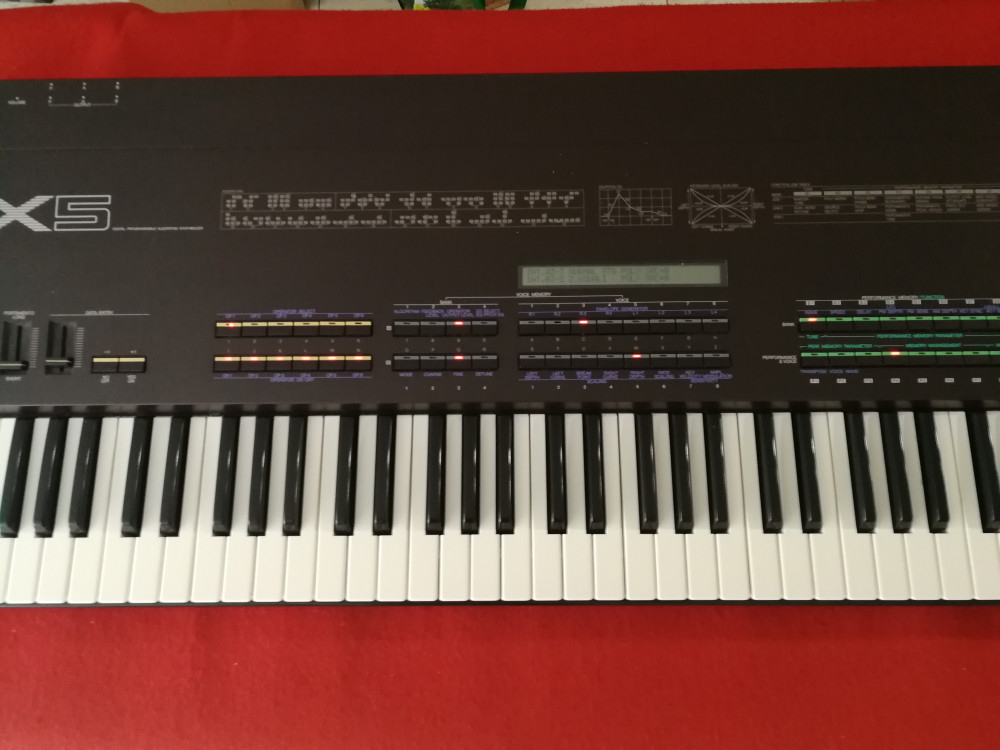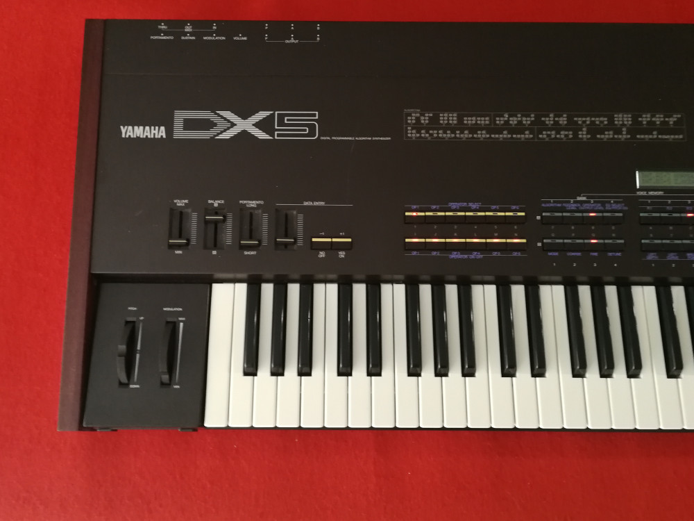 Sintetizador de síntesis FM. Tiene alguna marca de uso pero funciona perfectamente. Incluye 2 cartuchos: DX Data RAM y Voice ROMy pedal