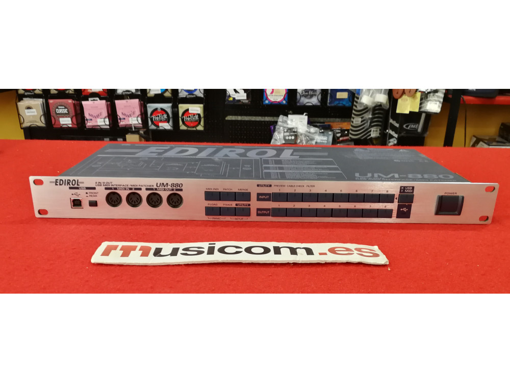 Interfaz MIDI/patcher MIDI.La gran mayoría de las funciones están disponibles mediante comandos de uno o dos botones en el panel frontal. Con ocho conjuntos de entradas y salidas MIDI, el UM-880 le permite controlar simultáneamente hasta 128 canales. Es fácil conectarse a su computadora: simplemente conecte un cable USB y listo.