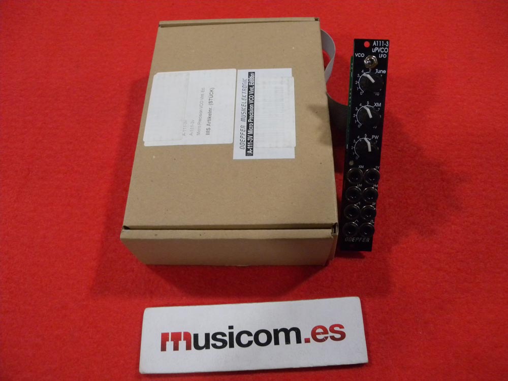 El módulo A-111-3 es un VCO / LFO de precisión que ahorra mucho espacio con un panel de 4HP solamente. Esencialmente es el mismo circuito básico que el A-111-2 pero con características reducidas: