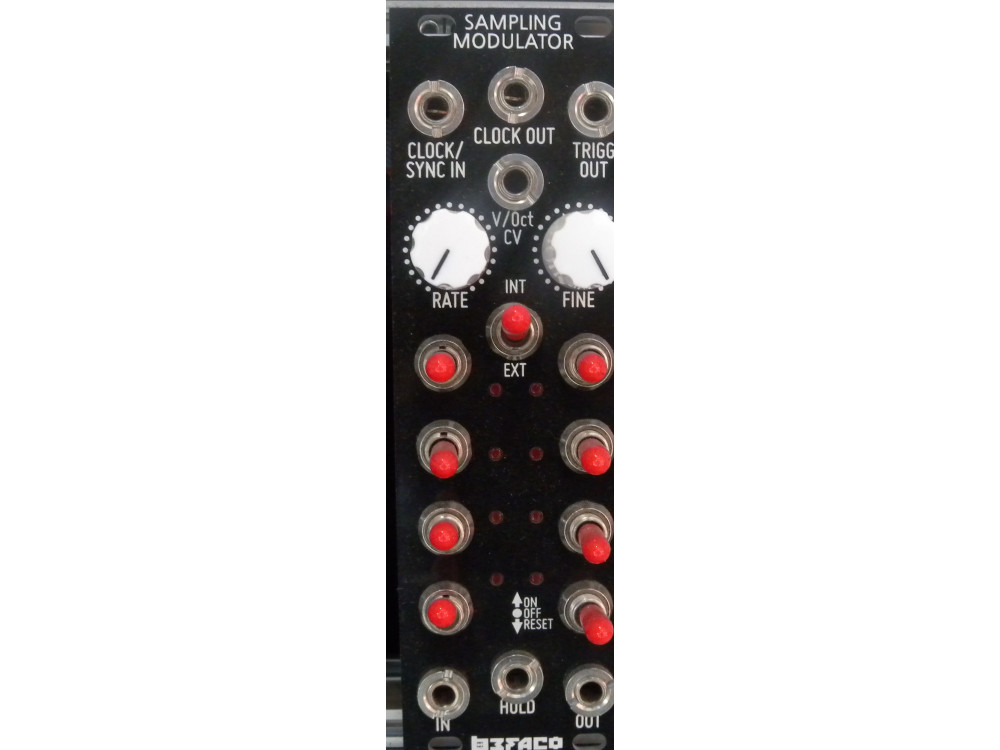- Secuenciador clocked Sample & Hold que permite generar más patrones que un Sample & Hold convencional, aportándole más capacidad de repetición. Incorpora entrada Clock que puede funcionar como clock (entrada convencional de reloj) o sync (entrada de reseteo del oscilador con la que se pueden crear efectos de swing así como poliritmias). Entrada Hold, que permite sostener algunas notas congelando la salida de CV