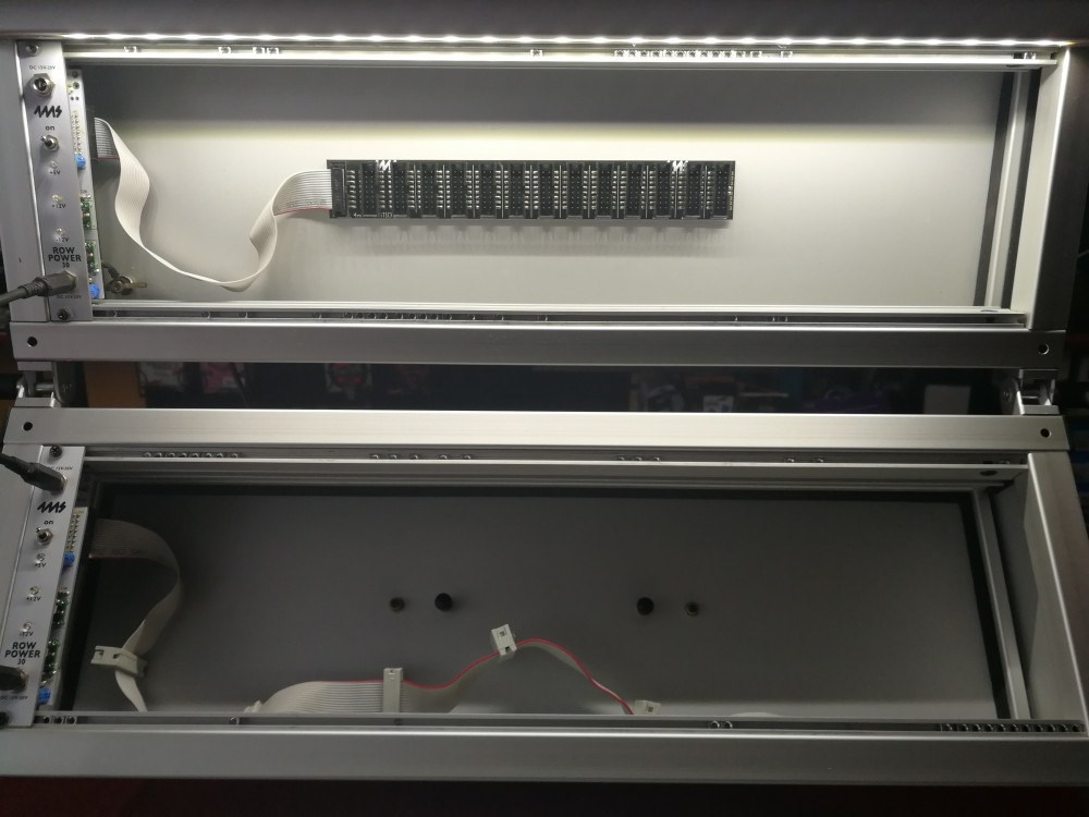 Caja eurorack para sistema modular. Incluye 3 modulos 4ms Row Power 30 para limentación. Iluminación de Leds
